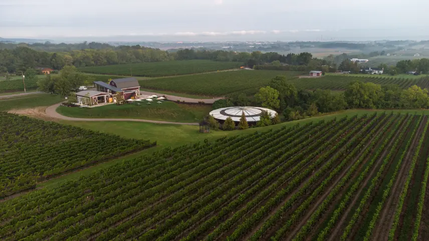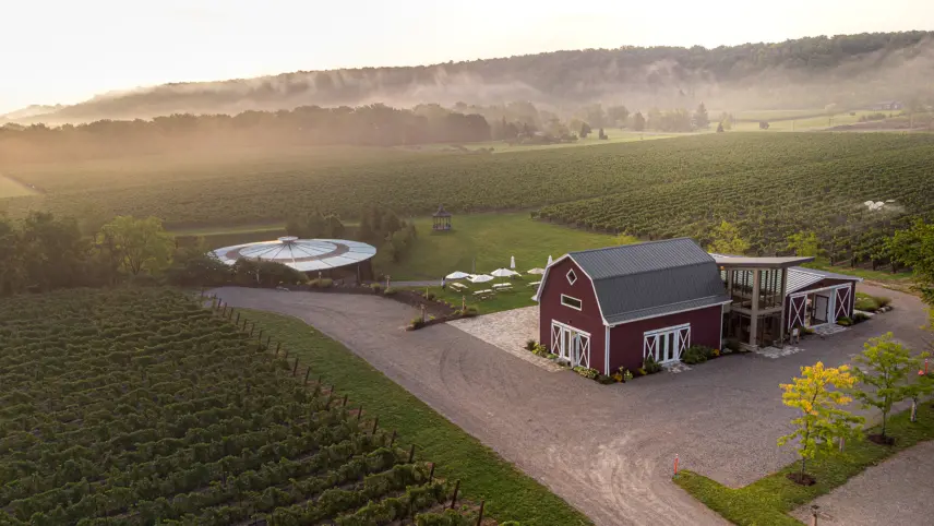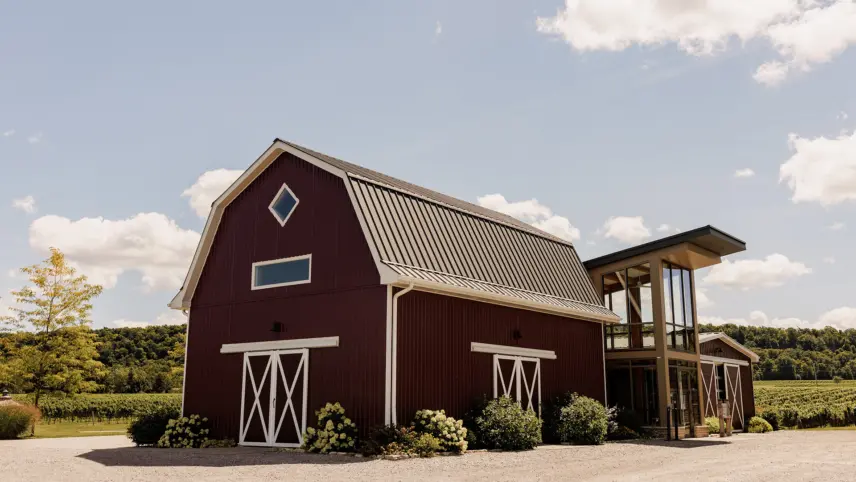 Cave Spring Vineyard offers expansive views of thriving vineyards and the scenic Niagara Escarpment. This remarkable venue for weddings boasts picturesque outdoor ceremony areas amidst the vines, an enchanting indoor barn for ceremonies, and a modern barn for romantic receptions.