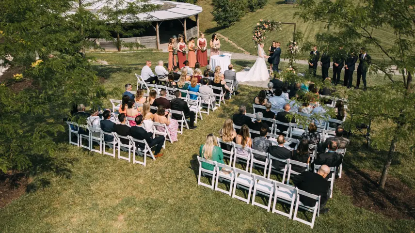 - On-site wedding ceremony and reception with seating for up to 90 guests